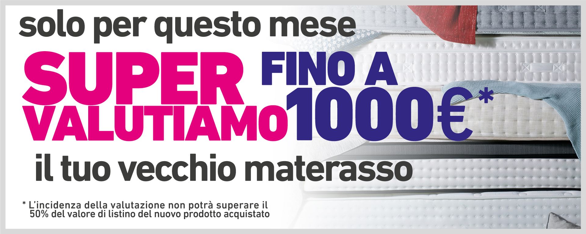 Solo per questo mese valutiamo il tuo vecchio materasso fino a 1000€ per l'acquisto di un nuovo materasso in lattice o memory...